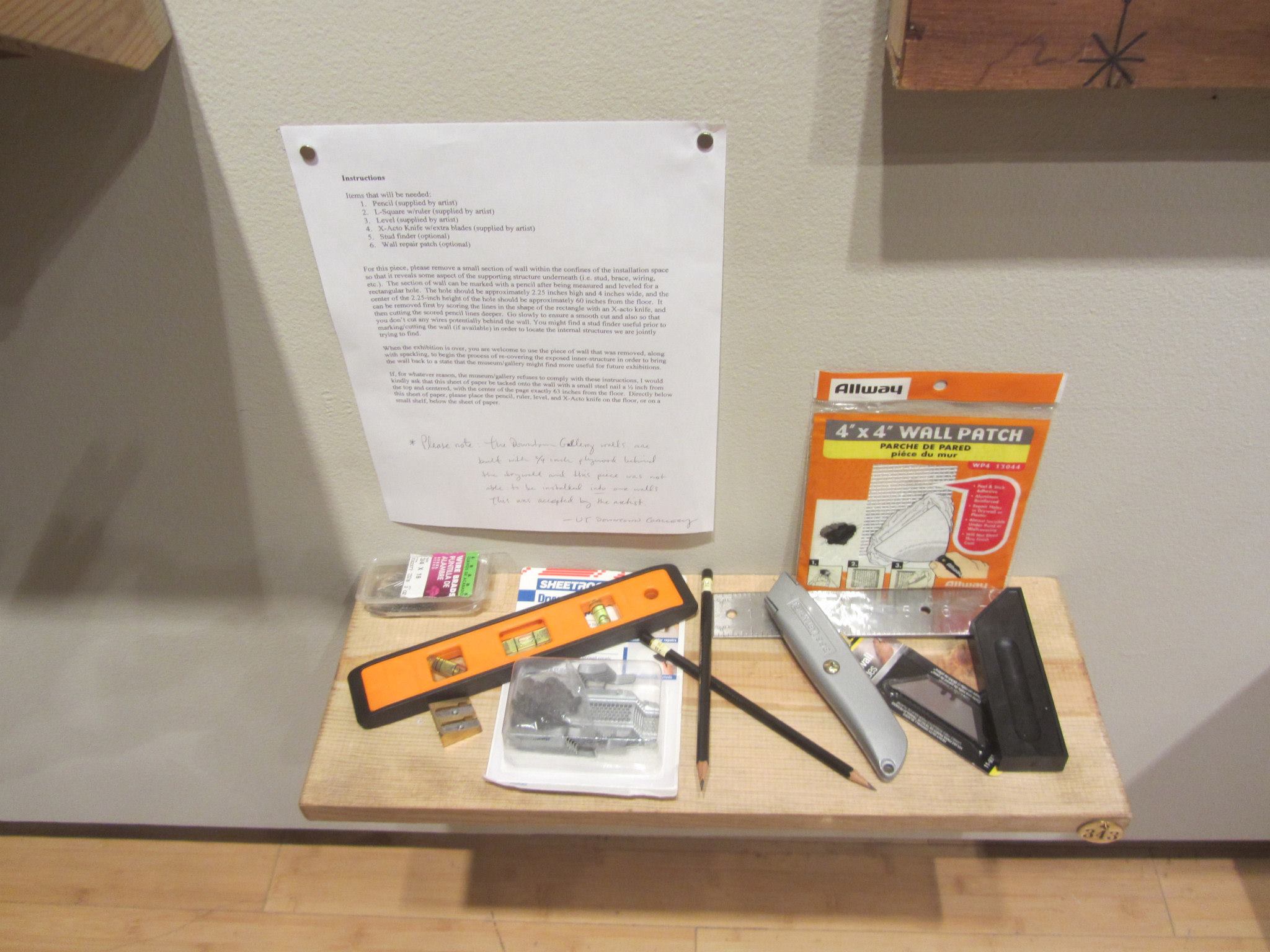 “Ossuary,” in which a rectangular hole is cut within a museum wall in an effort to consider the architecture itself,” gallery intervention, Herron School of Art and Design, Indianapolis, Indiana, 2014; University of Tennessee Downtown Gallery, Knoxville, Tennessee, 2013